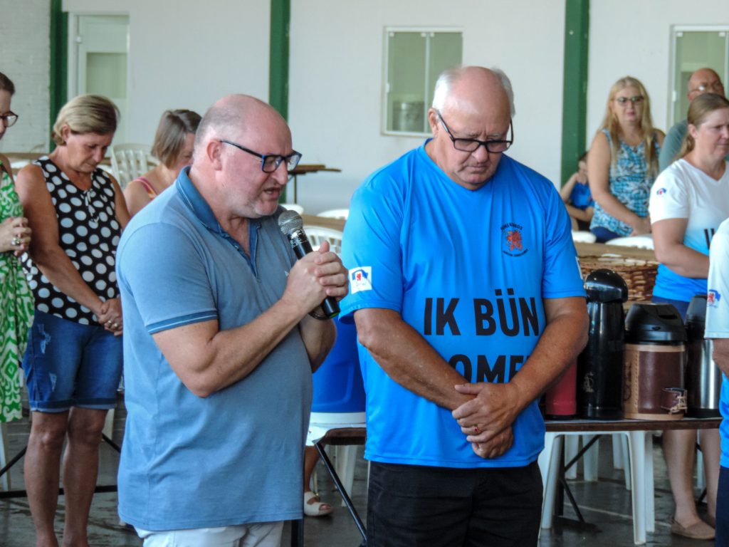 O sábado começou de maneira acolhedora. Os pomeranos de Marechal se reuniram no parque de exposições à espera dos amigos, em torno de 70 convidados, vindos da região de São Paulo das Missões, Rio GrandedoSul. Quando os visitantes chegaram, foram recebidos com alegria, música e um delicioso café da manhã típico, um verdadeiro café colonial, repleto de sabores que remetem às tradições dessa cultura encantadora.